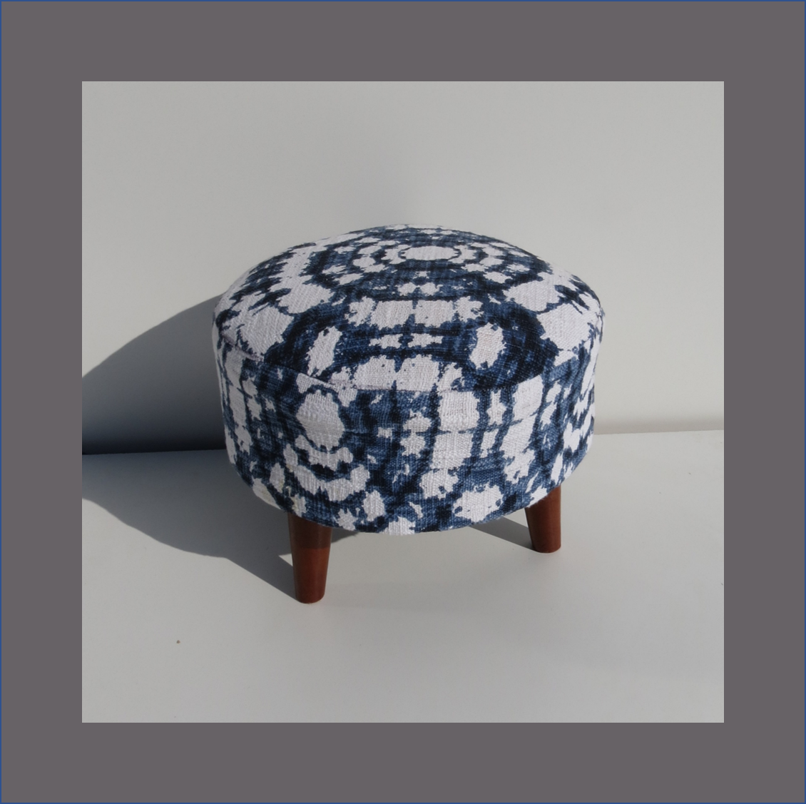 Tie Dye Blue and White Ottoman